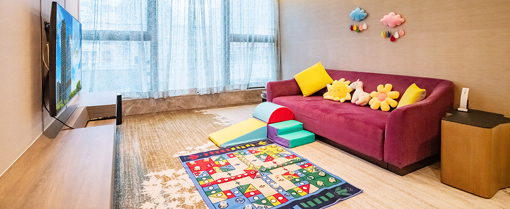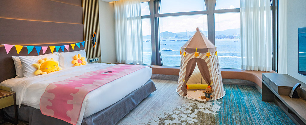 走進這間奇幻親子套房,立即發現可愛獨角獸、繽紛花朵和蓬鬆雲朵的裝飾。溫馨的小熊帳篷為孩子們提供完美的休憩天地。套房特設柔軟的遊戲區,舒適的靠墊和互動玩具讓小朋友樂在其中。在這個充滿奇幻色彩的空間裡,孩子們可以盡情探索,體驗夢幻世界的無限樂趣。