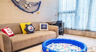 海洋靈感天地:維多利亞港與想像力的邂逅 我們的親子主題房讓您沉浸在維多利亞港的海洋氛圍中。小探險家們可以在波波池盡情遊玩,而精心擺設的絢麗漁網為空間增添獨特魅力。 航海主題延伸至每個角落,細膩的裝飾——溫馨的帳篷與航海風格抱枕——營造出迷人氣息。 當夜幕低垂,小水手們甜甜入夢,父母則可以悠然欣賞迷人的海港夜景,享受寧靜時光。